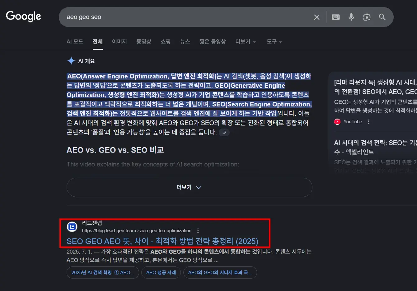 ✅ GEO AEO 차이 검색 → GEO AEO 차이 완벽 비교