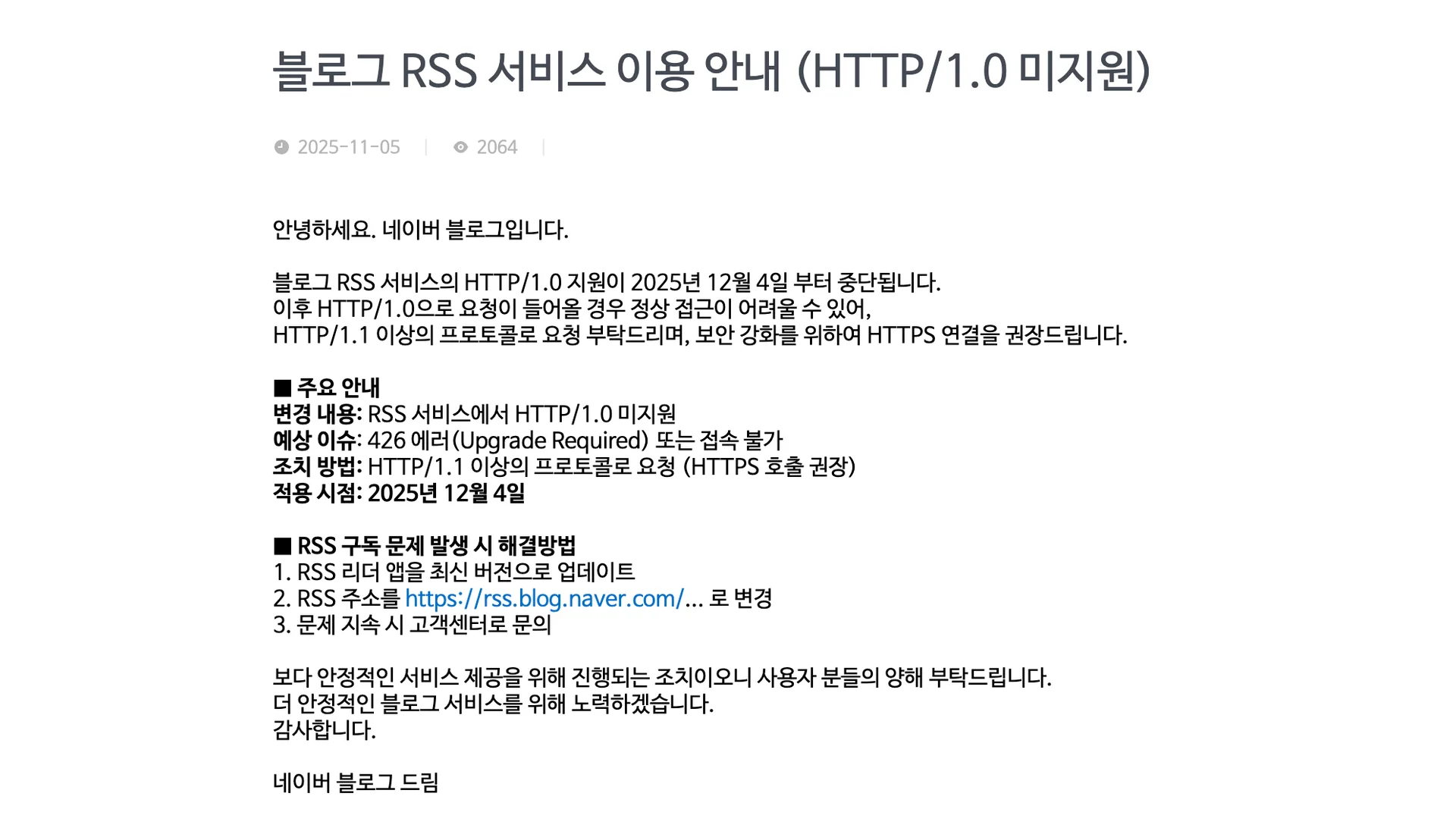 네이버의 공지대로 RSS의 구형 접근 방식이 차단되면서, 블덱스가 의존하던 데이터 수집 방식이 작동하지 않게 되었습니다. "지수 삭제"는 사실이 아닙니다.